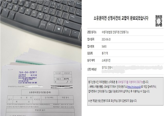 증여자가 등기권리증(등기필정보)를 분실하여 확인서면 작성 후 무사히 등기가 완료되었습니다.