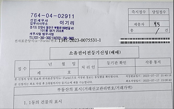 해당 사례는 분양받은 주택에 대한 소유권이전등기 신청으로 분양회사와의 일정조율, 분양회사가 보유하고 있는 서류들을 받는 것이 중점사항이라 할 수 있습니다.