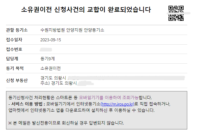 협의이혼에 따른 재산분할등기 신청 사례