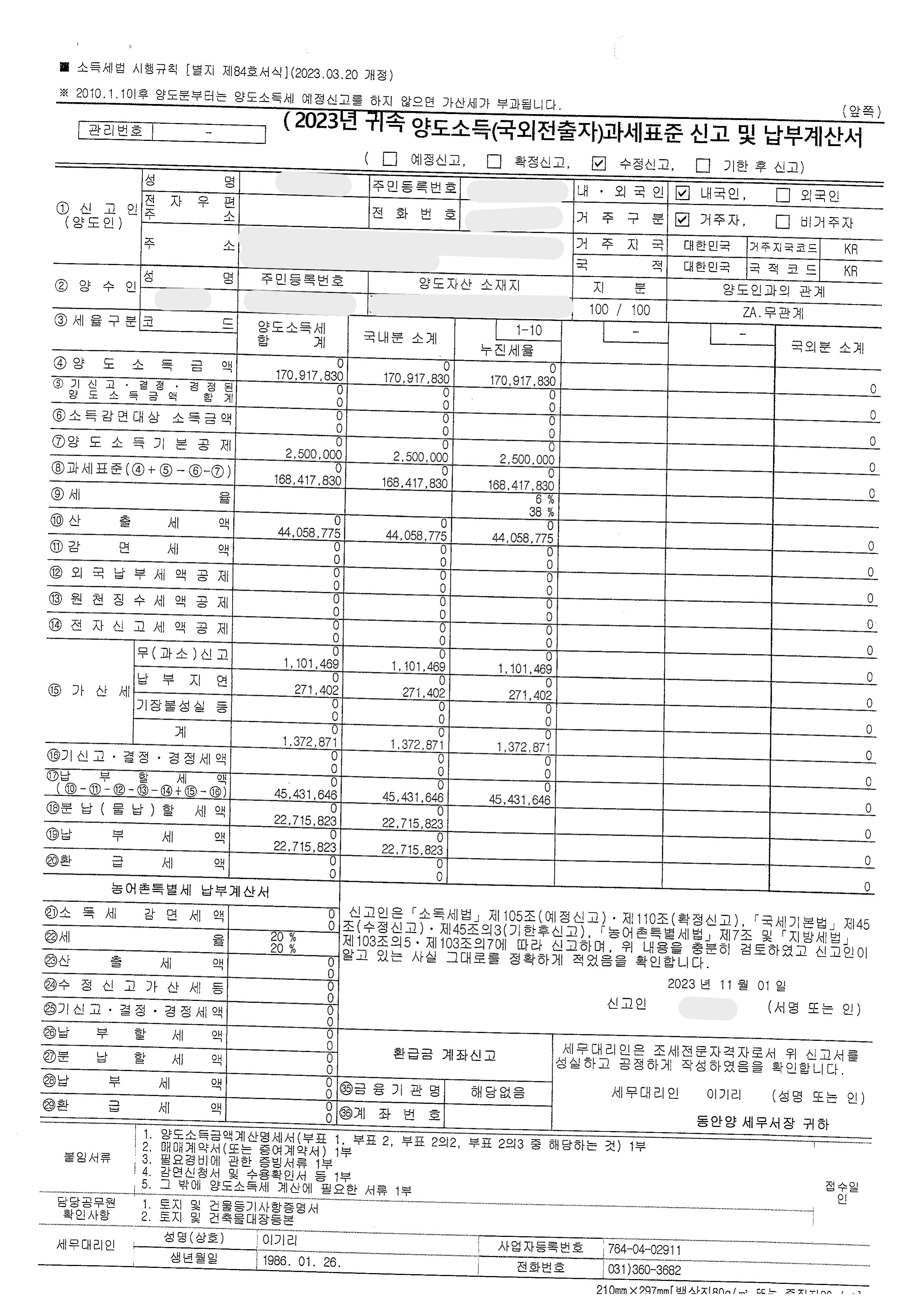 양도소득세 수정신고(비과세 수정) 신고 사례
