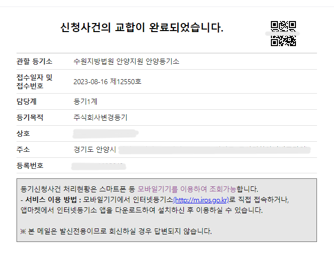 주식회사 변경등기(사업목적 변경) 신청 사례
