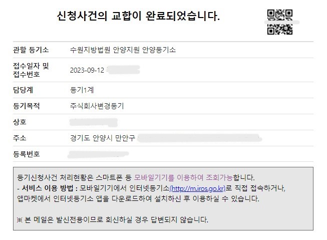 주식회사 변경등기(임원변경_사임) 신청 사례