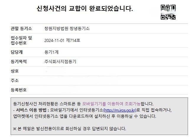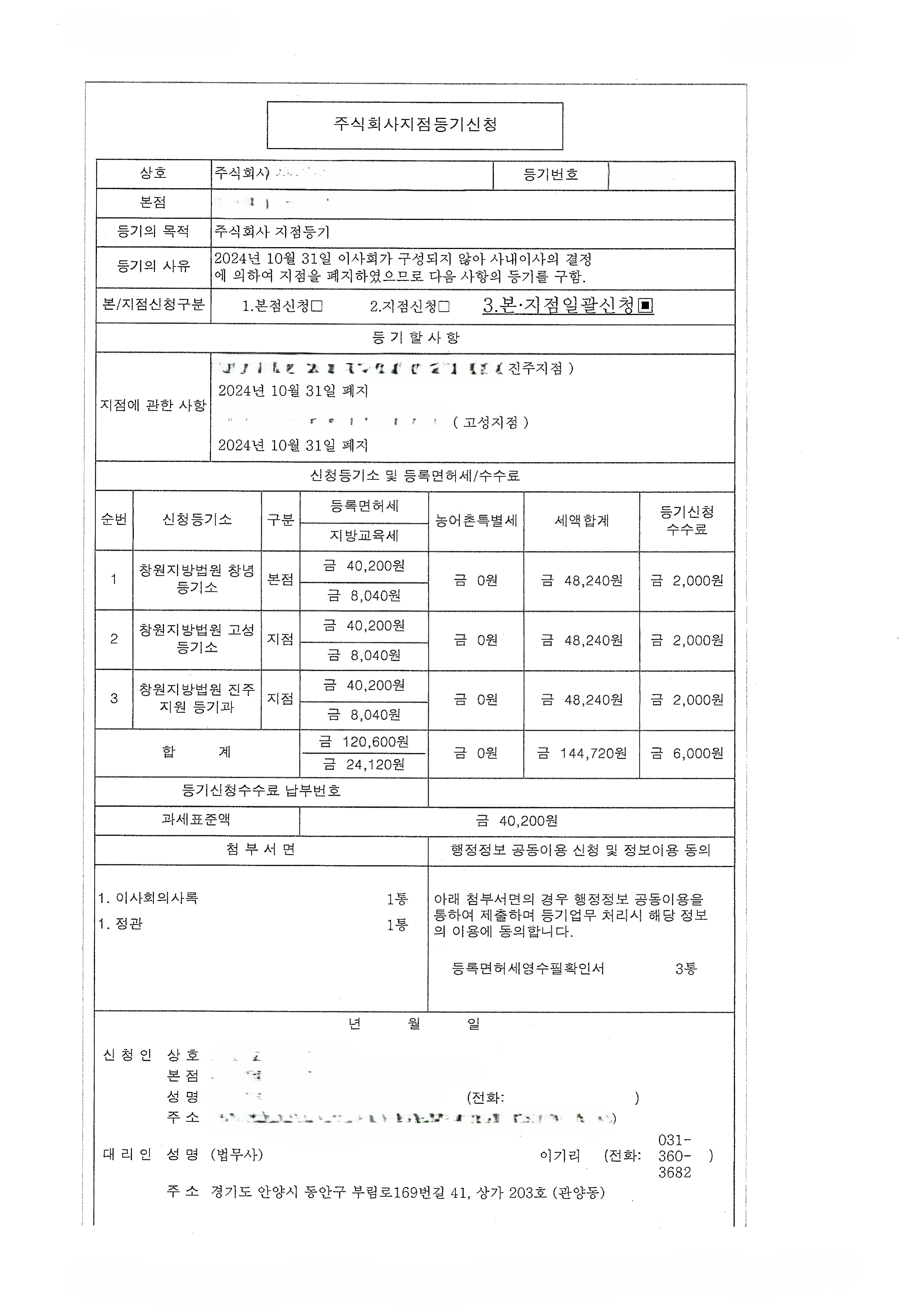 주식회사 지점등기(지점폐지) 신청 사례